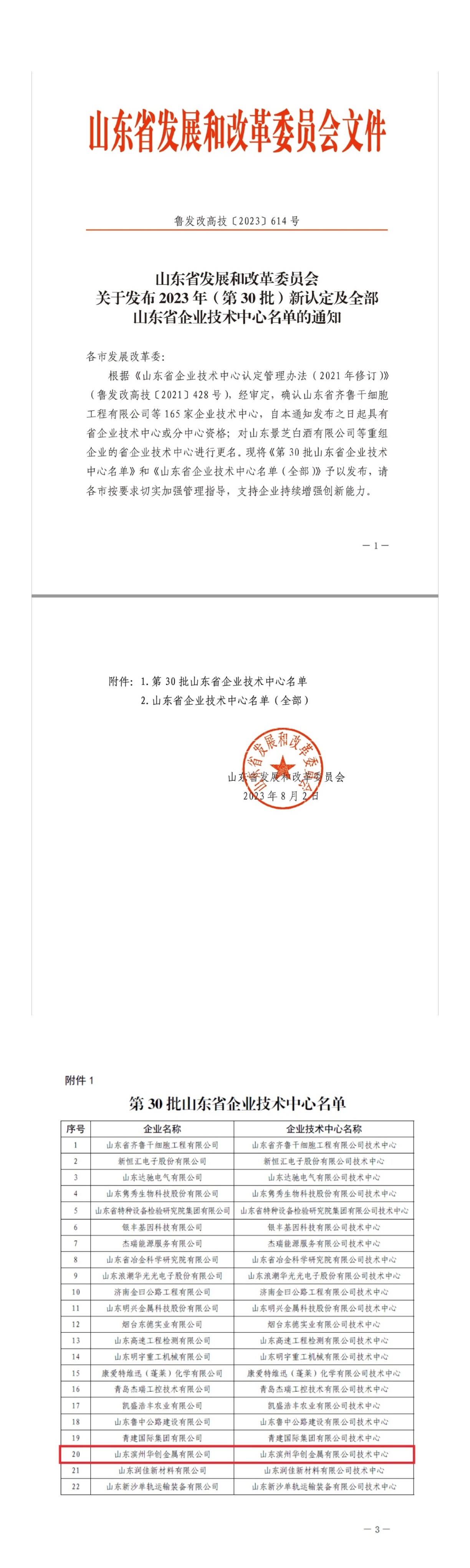 公司被认定为2023年度山东省企业技术中心